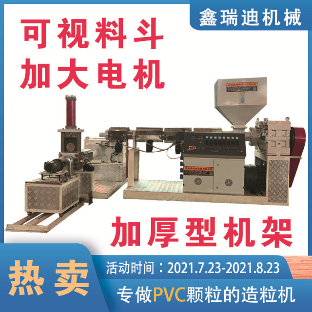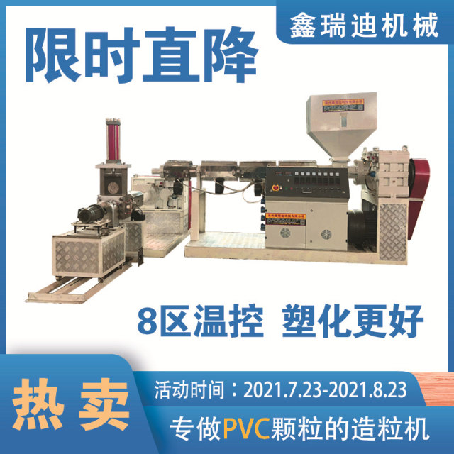 4.正常出粒时调节切粒机,进行变频调速调整颗粒大小。螺杆在出料前需要让切粒机不停地转动,如果是水冷喷雾式切粒,切粒罩要先通水,然后开启主机进行正式生产。